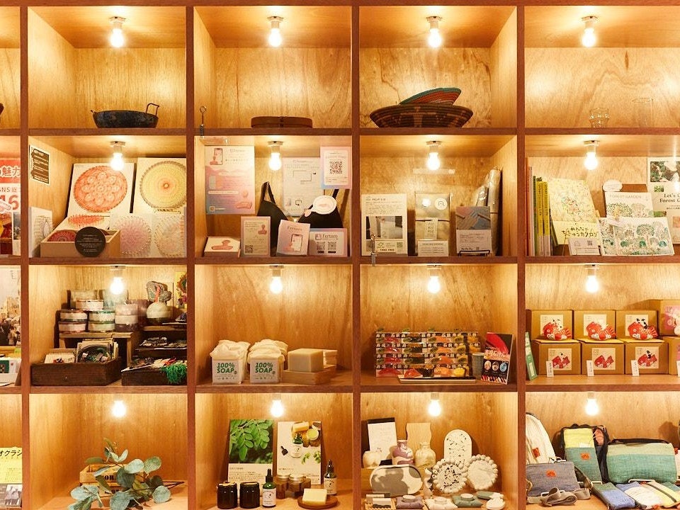 2Fの「37棚商店街 - Inspired by ひとつ屋根の下」には、社会や環境に想いを持つ法人・団体・個人の商品が37の棚にぎっしり。障がい者が働きやすい環境を整えた認定子会社でつくられた「寿司石けん(1,430円税込)」や、フェアトレードにて障がい者や生活困窮者の支援に関わり製作しているオリジナルの毛糸であるTシャツヤーンで製作された「アップサイクルヤーンモンスターカードケースチャーム(2,500円税込)」といった商品が人気を集め「手作り感や想いが伝わってくる売り場ばかり。作り手の顔が浮かぶと、買い物の感覚も変わりますね」(40代女性)と話してくれたお客様もいました。
