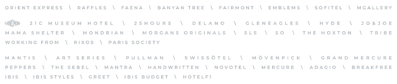 フランス・パリを拠点とするアコーは、世界110ヶ国で5,500を超えるホテルやレジデンス、10,000を超えるレストラン、バー施設を展開し業界を牽引しているホスピタリティグループです。40を超えるラグジュアリー、プレミアム、ミッドスケール、エコノミーのホテルブランド、エンターテインメントやナイトライフの会場、レストランとバー、プライベートレジデンス、シェア宿泊施設、コンシェルジュサービス、コワーキングスペースなど、ホスピタリティ業界内で多様かつ完全に統合されたエコシステムを展開しております。業界内で最も急速に成長しているカテゴリーの1つであるライフスタイルホテルにおいては、数々のクリエイティビティ溢れるライフスタイルブランドを持つENNISMORE社とのジョイントベンチャーにより、確固たる地位を確立しています。アコーは、他に類を見ない独自のブランドのポートフォリオと、世界中で約29万人のチームメンバーを誇っています。アコーの包括的なロイヤリティプログラムのメンバーは、毎日の暮らしの中で、さまざまな特典、サービス、体験へアクセスをすることが可能です。