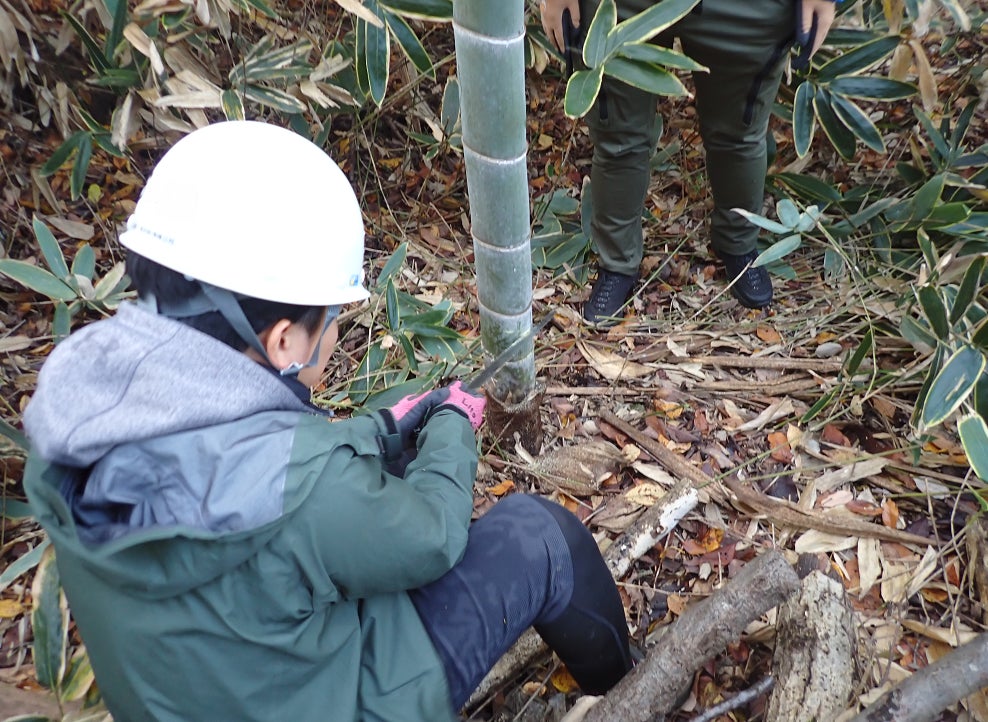 また、お子さま連れの家族は、間伐した細い竹を用いた「竹細工づくり」を体験し、参加者一同が自然と触れ合いながら、環境保全について深く学ぶ機会となりました。
