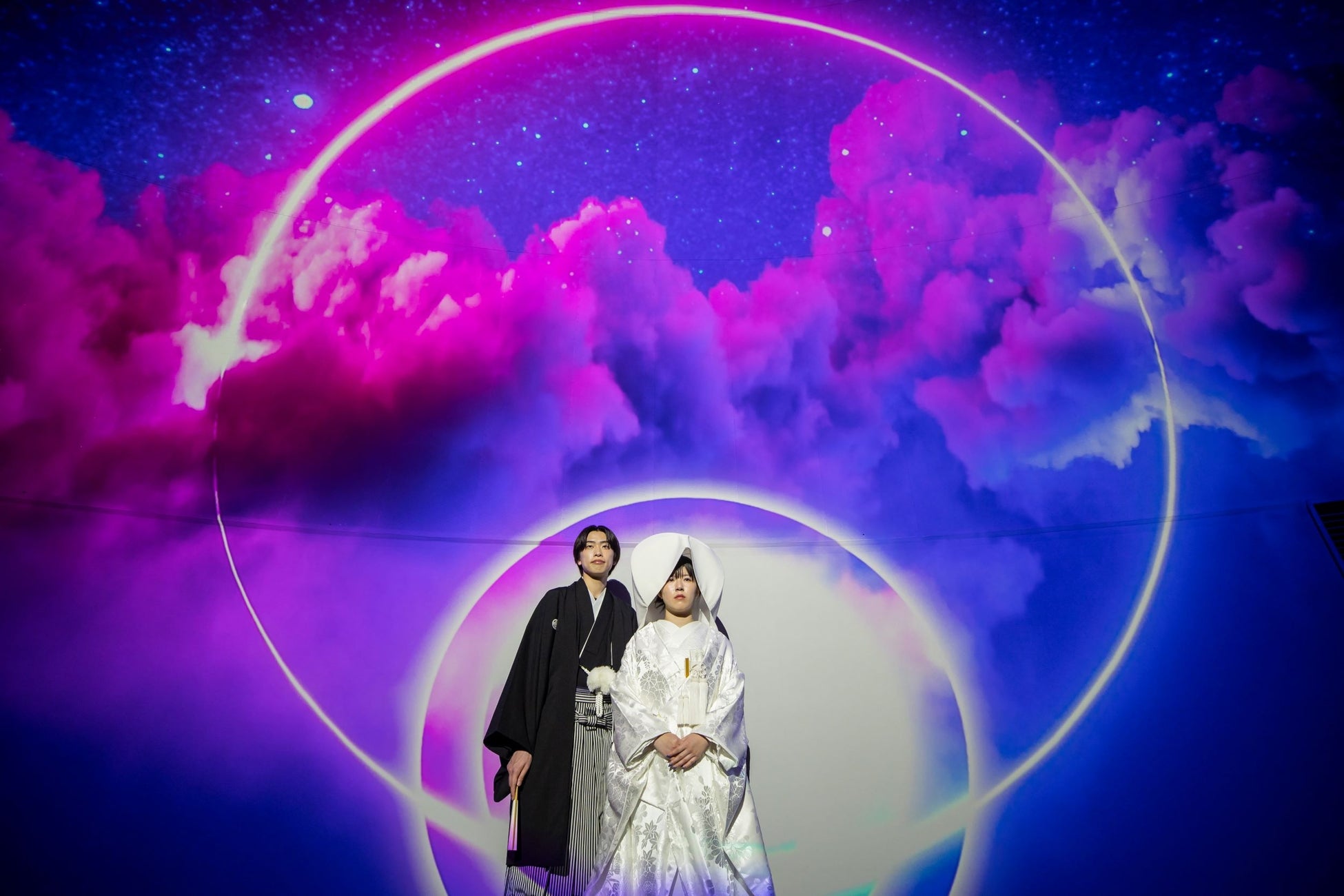 『和婚スタイル』×『コニカミノルタプラネタリアTOKYO』のコラボレーションで<和>の要素を取り入れた<新しいウエディングフォトスタイル>が 「コニカミノルタプラネタリアTOKYO DOME1」で実現。プラネタリウムという場所を多種多様な映像と空間が交差するフォトスタジオとして捉え、