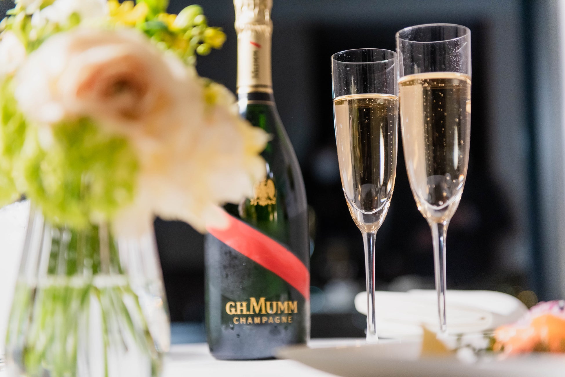 【内容】・乾杯ドリンク、カーネーション卓上花