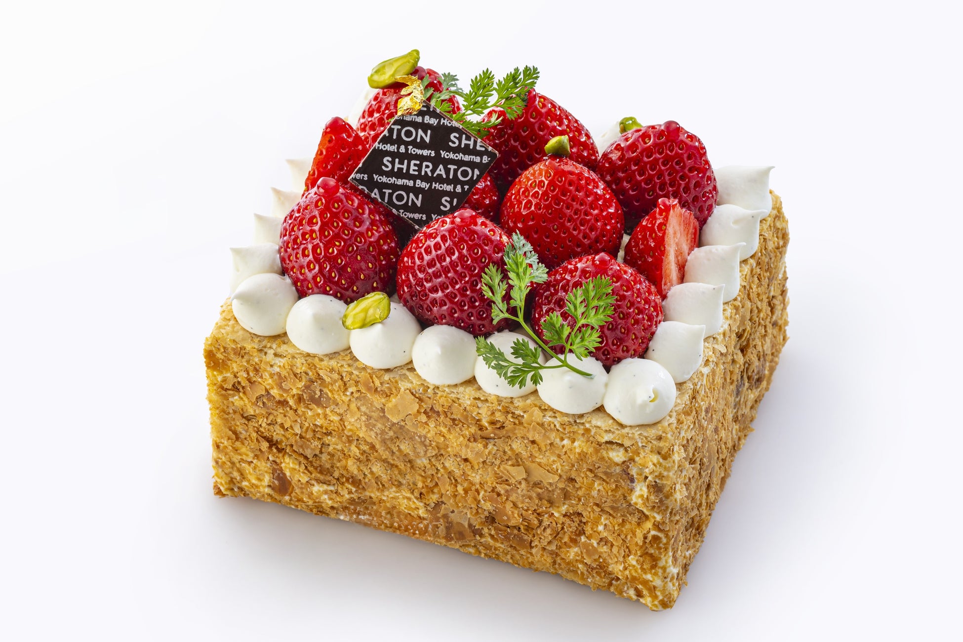 サクサクに焼き上げたパイ生地と濃厚なカスタードクリームが美しく織りなす断面層に、新鮮な苺をサンドした「ドーレ」の定番人気を誇る「苺のミルフィーユ」。母の日にはご家族皆さまでお召し上がりください。