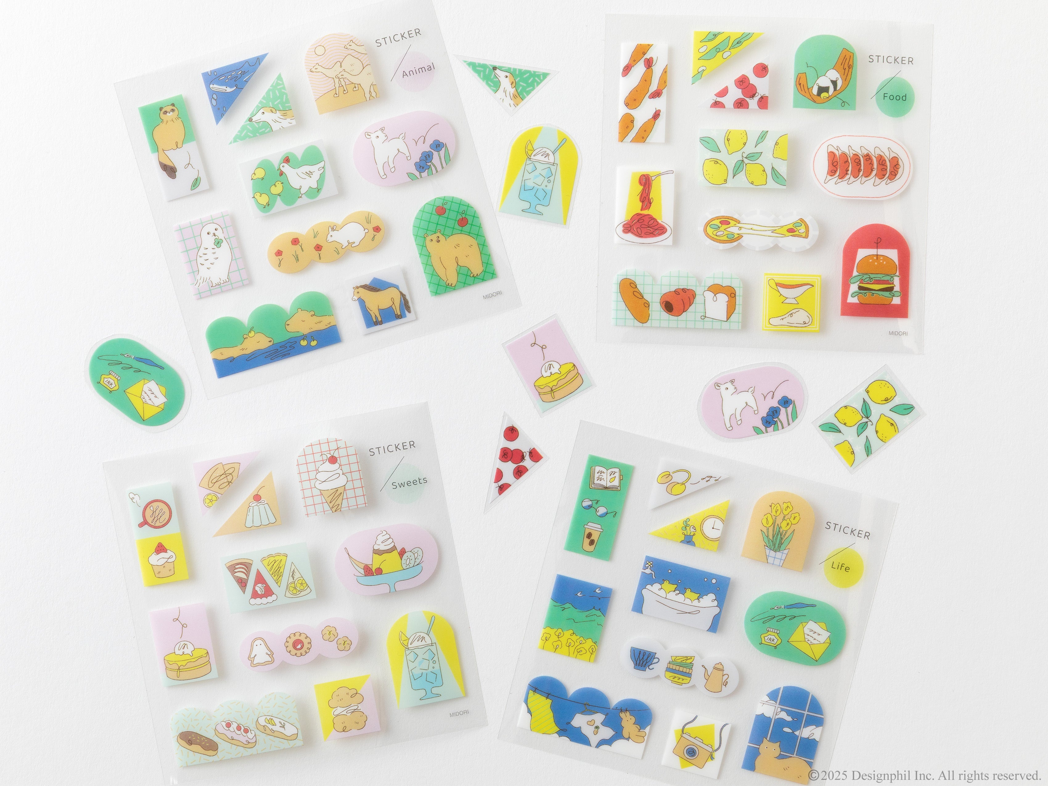 ノートや持ち物をデコレーションできるクリア素材のシール。日常やおでかけの中にある、ワクワク感たっぷりなモチーフをテーマに描いています。鮮やかな色のシールは貼るだけで気分が上がる!ブース内の機械のレバーを回すとシールがランダムで1枚出てきます。どのデザインが出るかお楽しみに!