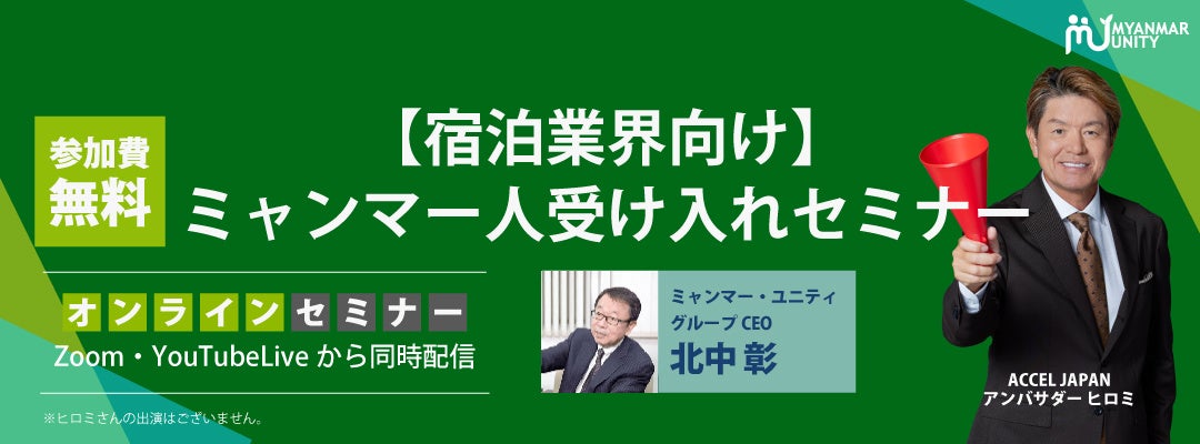 ミャンマー政府認定圧倒的No.1人材送り出し機関「ミャンマー・ユニティ」は、【宿泊業界向け】2024.5/22(水)にミャンマー人受け入れセミナーを開催