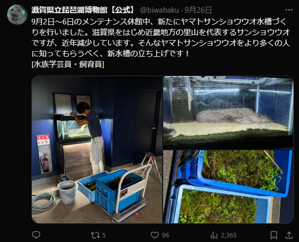 水槽整備の様子など活動の裏側を載せるなど、博物
