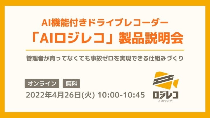AIドライブレコーダーと従来のドライブレコーダーの違いとは?「AIロジレコ製品説明会」を2022年4月26日(火)オンラインで開催