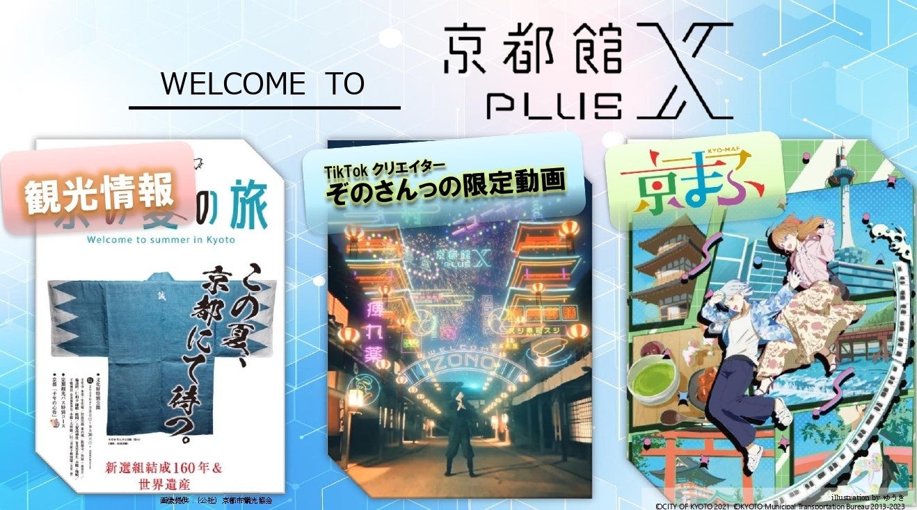 (※)京都館PLUS X 東京都中央区(八重洲)の「京都館」が平成30年3月に閉館した後も、京都情報の発信を継続、拡大するため、京都市が令和4年3月にインターネット上の仮想空間に開設したバーチャル京都館(メタバース)。空間上にモニターやパネルを設置し、伝統工芸や京都市のイベント、観光資源等の京都の魅力を発信、体験できるだけでなく、メタバース上で人々が交流できる場づくり等を目指します。 なお、「京都館PLUS X」は、アートやカルチャーの発信拠点として多くの若者が訪れる渋谷区立宮下公園を仮想空間上に再現した「渋谷区立宮下公園 Powered by PARALLEL SITE」内に設置しています。 |