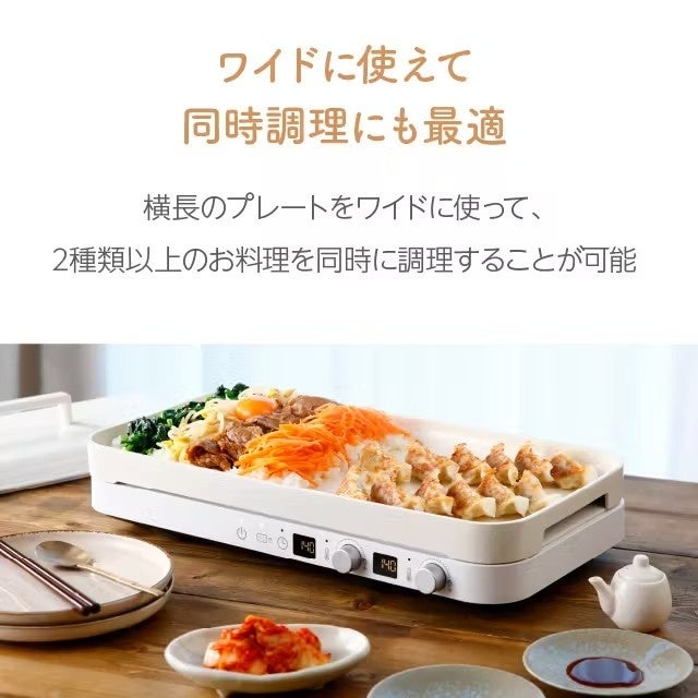 横長のプレートを採用しており、2種類以上の料理を同時に調理することも可能です。
