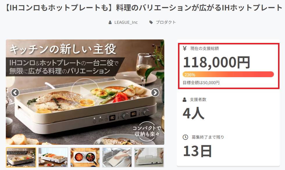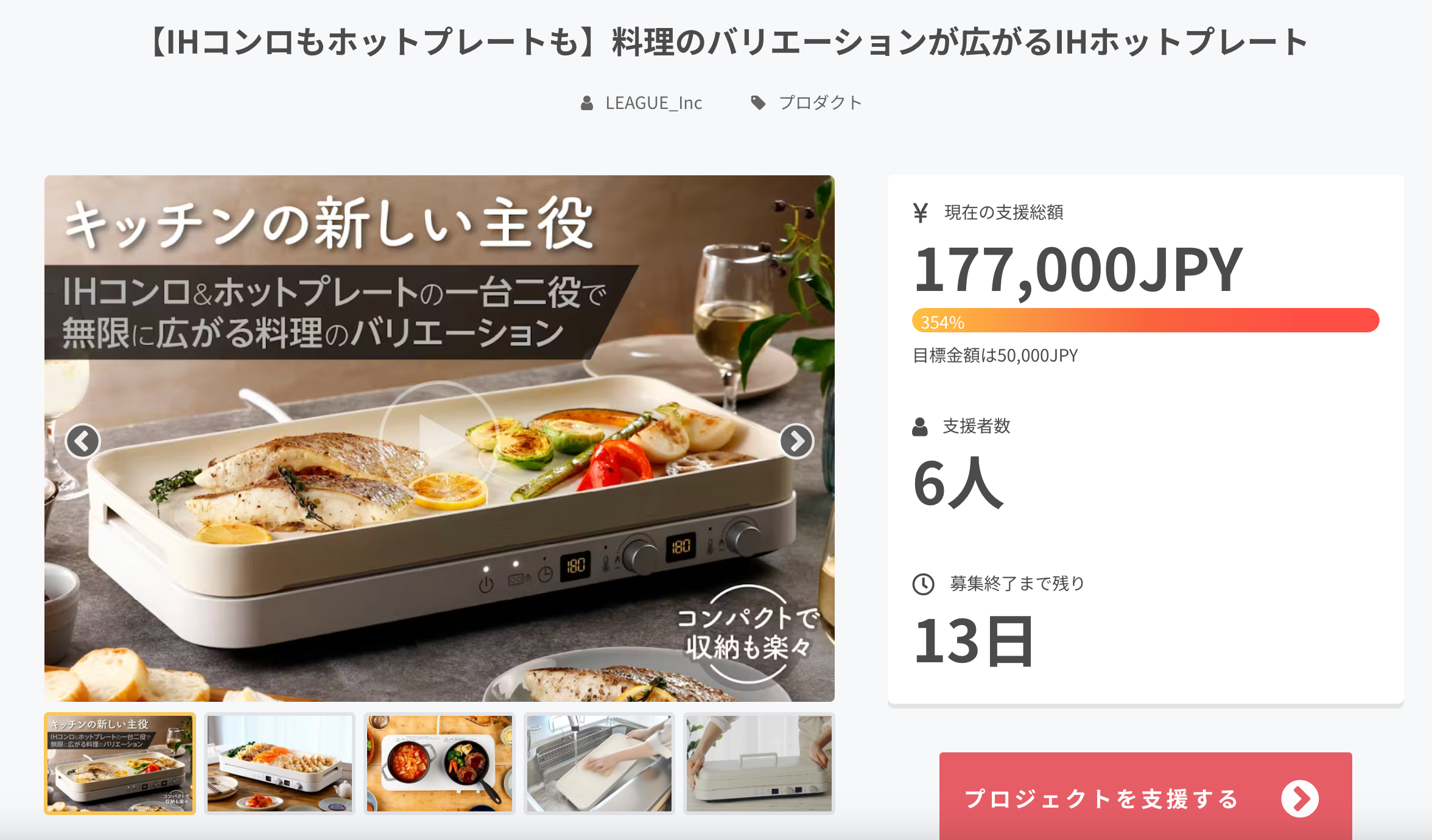 株式会社LEAGUE(本社:東京都武蔵野市)は、1台2役の多機能なIHホットプレートのクラウドファンディングを、2024年2月22日(木)18:00よりクラウドファンディングサイト・CAMPFIREより開始しました。