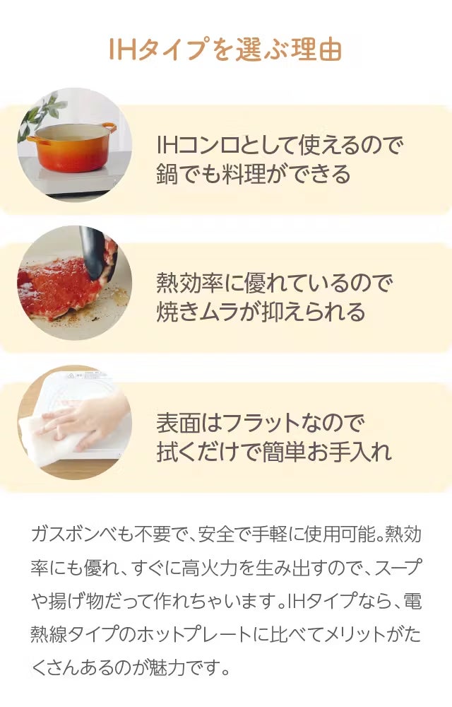 IHホットプレートは、IH調理器としての機能とホットプレートとしての機能を兼ね備えています。