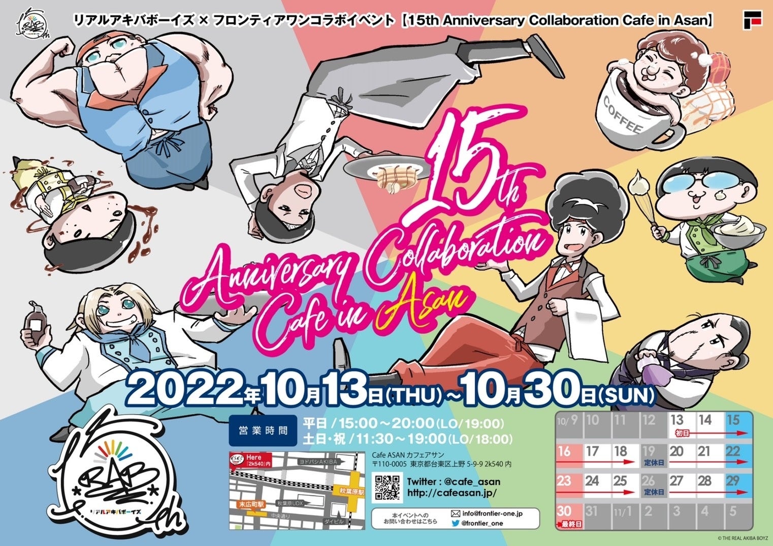 アニソンダンスパフォーマー「REAL AKIBA BOYZ」が、その活動15周年を祝し、秋葉原「Cafe ASAN」にてコラボカフェを開催!ここでしか手に入らない各種限定グッズも発売!