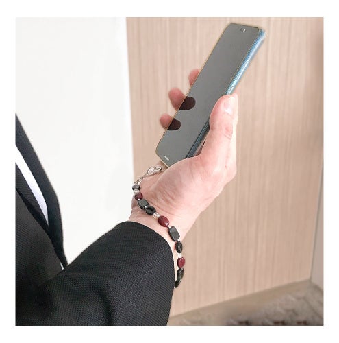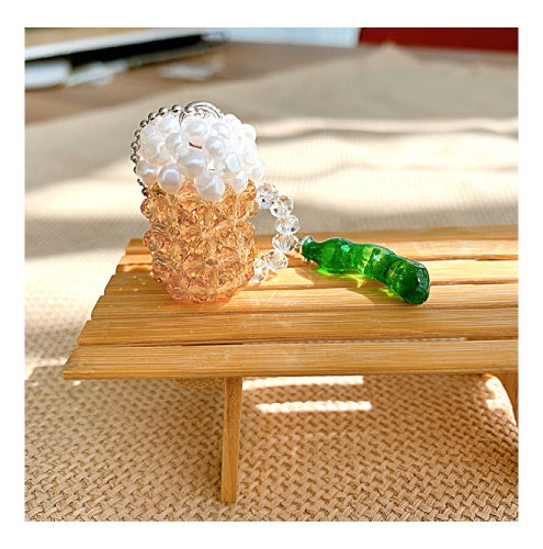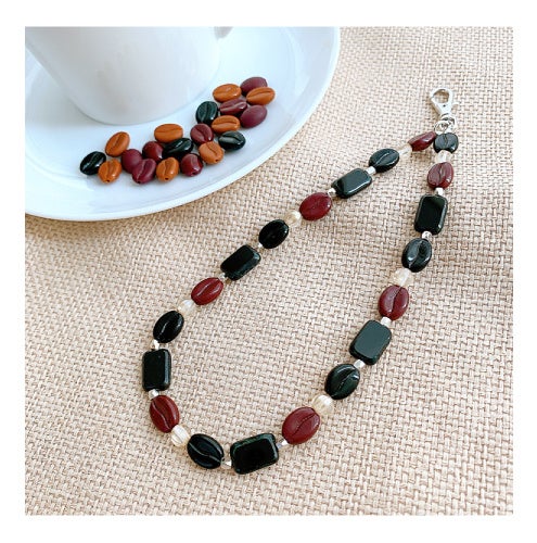 - コーヒー豆の形をしたチェコビーズを使用した、スマホストラップ