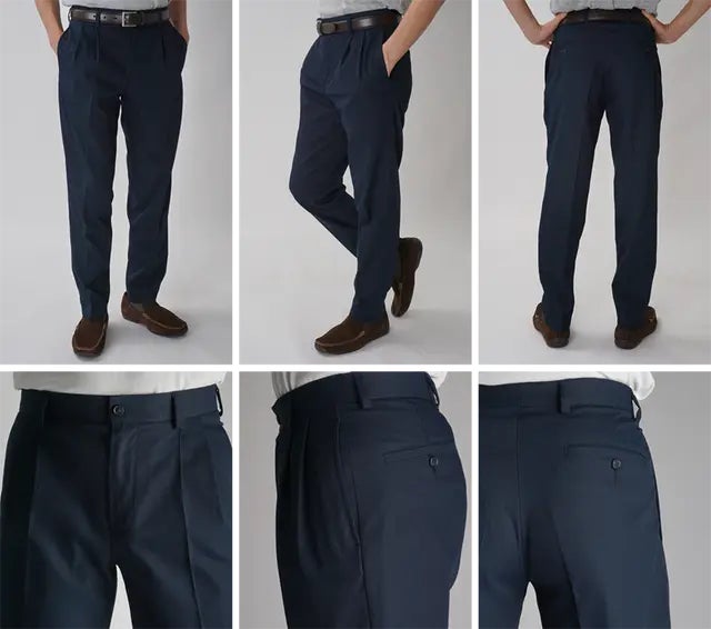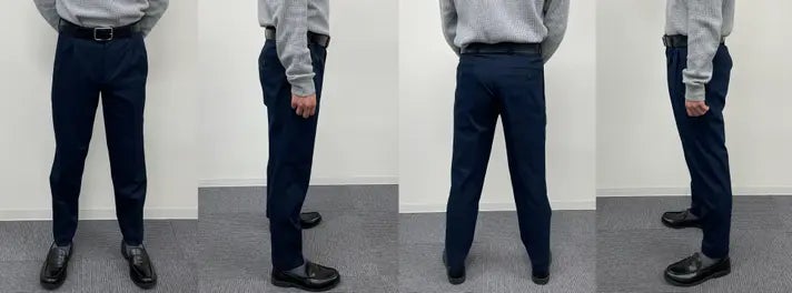 センタープリーツとツータックが施された人生チノ。スリムなシルエットを実現しつつ、体の動きに合わせて自然に広がるのが特徴です。また、ツータックにより布地に余裕が生まれ、座ったり動いたりする際の快適さが向上。見た目の上品さから、ビジネスシャツやジャケットとの相性の良さはもちろん、カジュアルなスタイルにも洗練された印象を加えることができます。