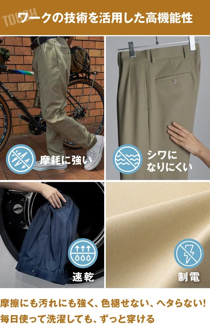 さらに、制電糸を組み込むことで、ホコリや汚れが付きにくく、快適に過ごせる設計になっています。ビジネスもカジュアルもこなせる、次世代チノパン。シンプルでありながら、大人の品格を感じさせるデザイン。シャツと合わせればビジネスシーンに、カジュアルなトップスと組み合わせれば休日にもフィットします。