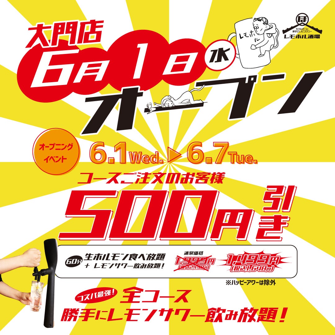 - 6/1(水)「レモホル酒場 」大門店、堂々OPEN!!