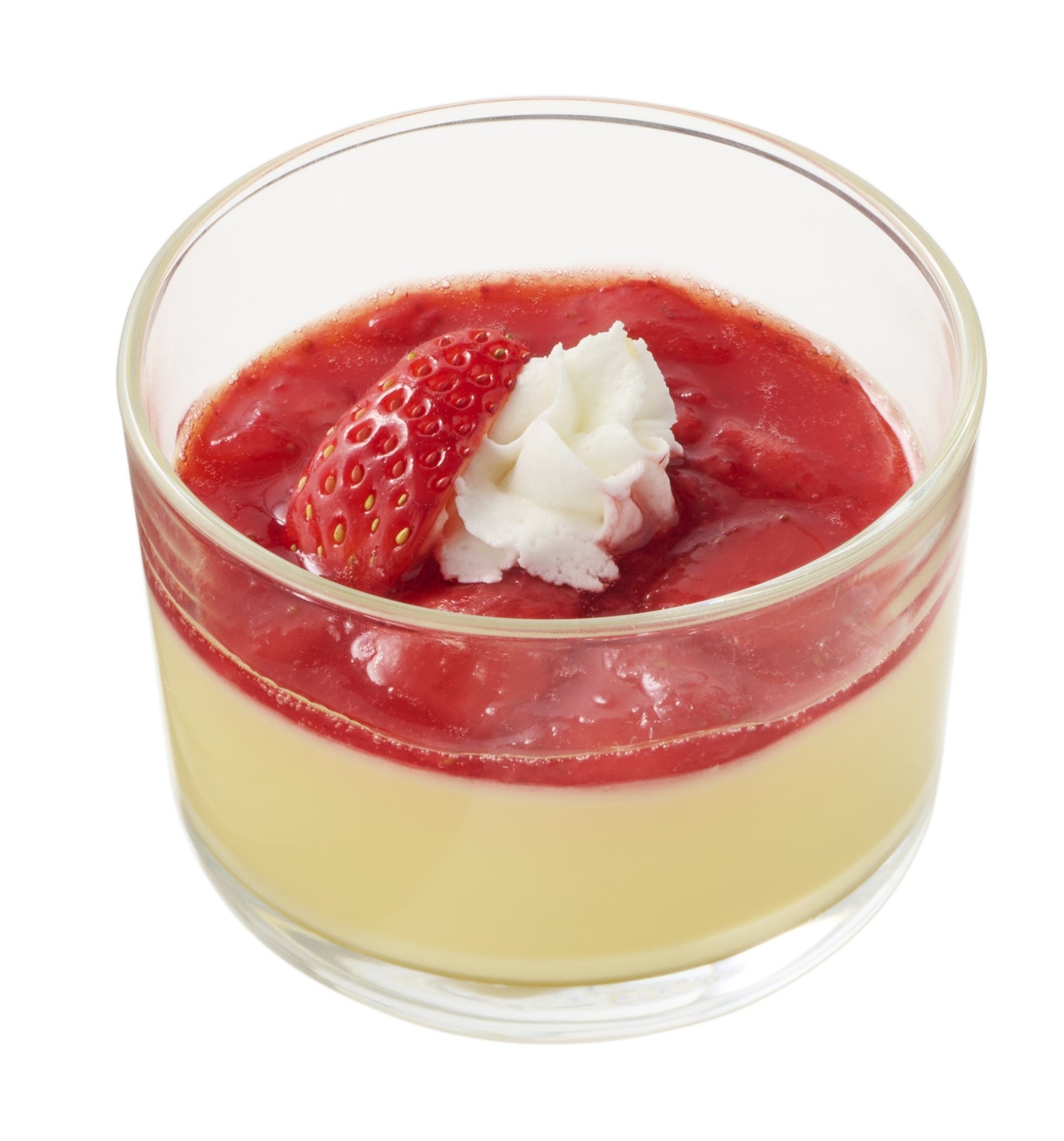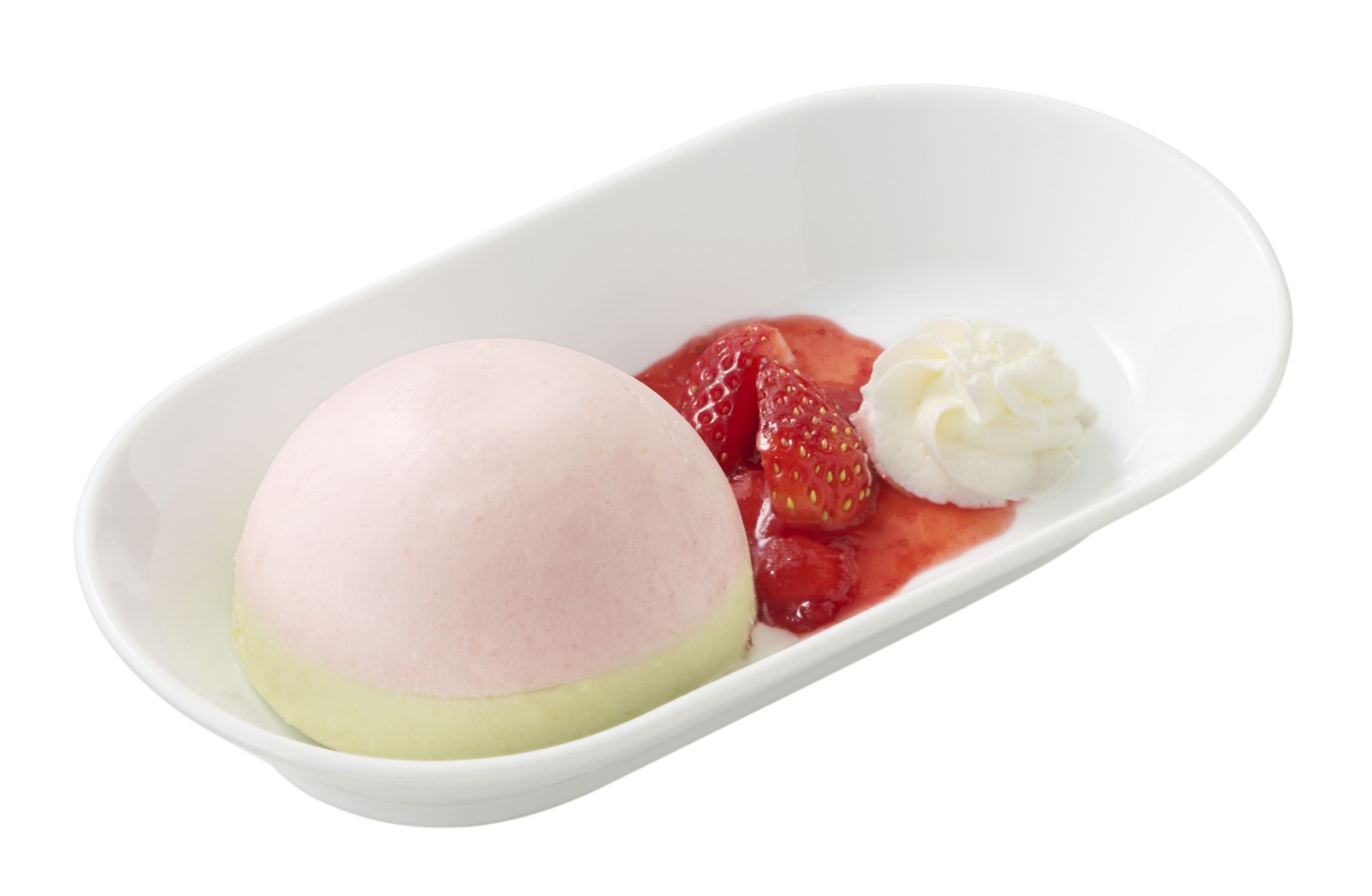 とろ~りもっちりとしたプリンに、ストロベリーのソースをたっぷりかけました。甘味と酸味のマッチングがたまらない一品です。