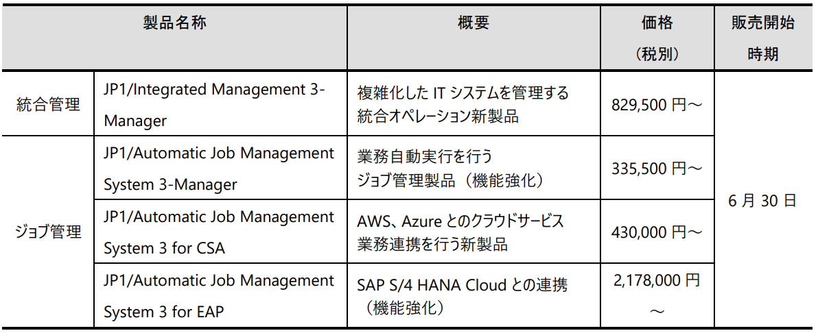 なお、「JP1 Version13」の新機能が利用できるSaaS型運用管理基盤「JP1 Cloud Service」の最新版を9月29日から販売開始します。