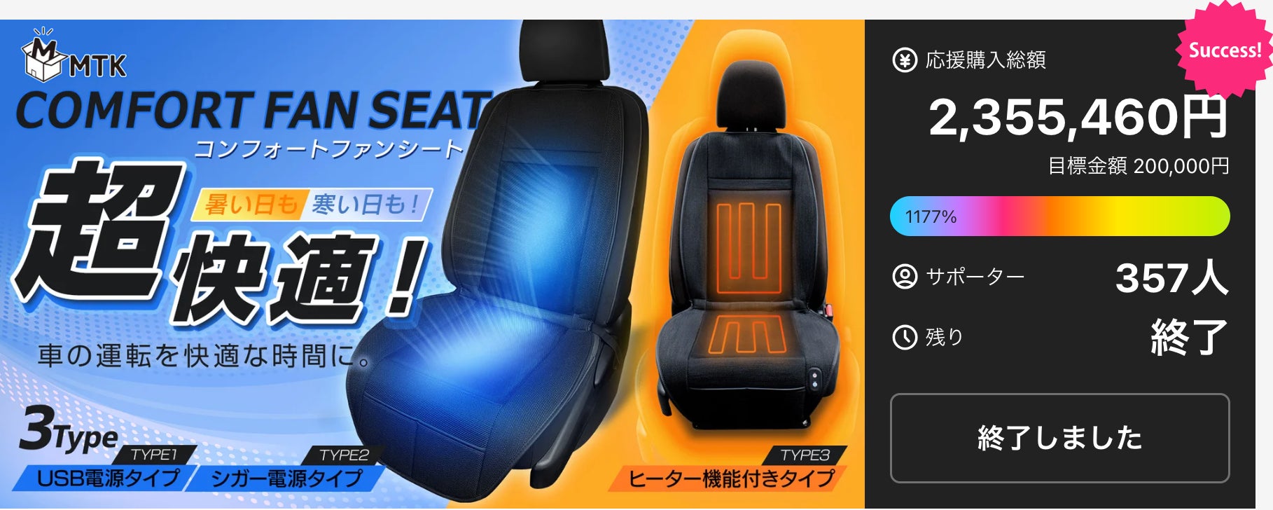 ぜひこの機会に、お得なセールを活用し、「MTKコンフォートファンシート」で、今年の冬のドライブを快適で暖かなものにしてください。