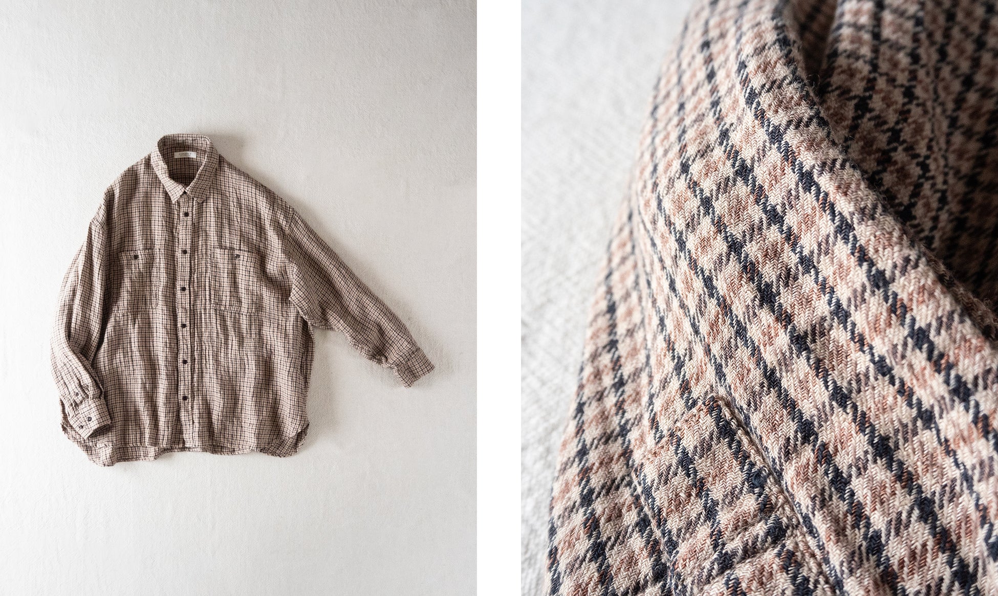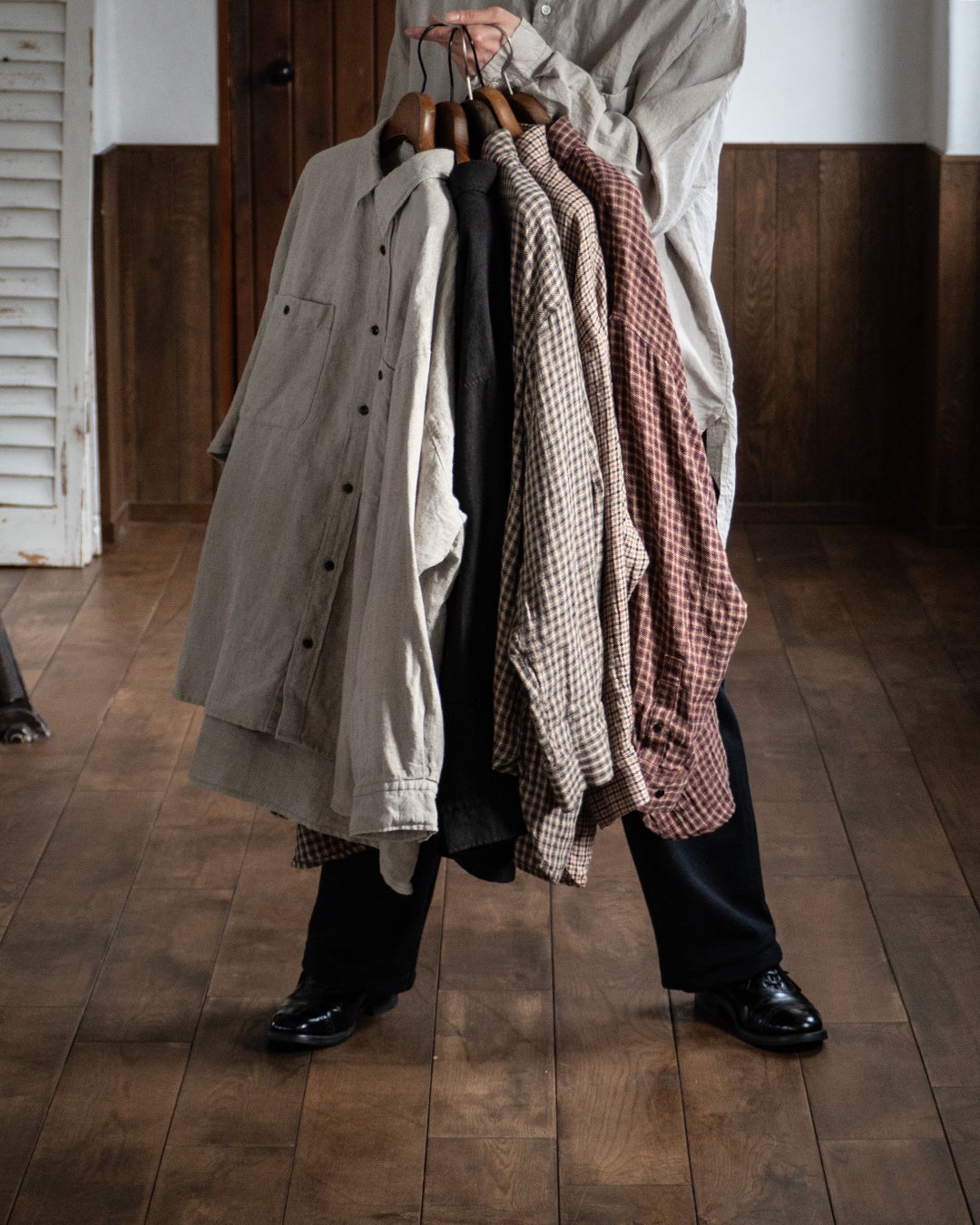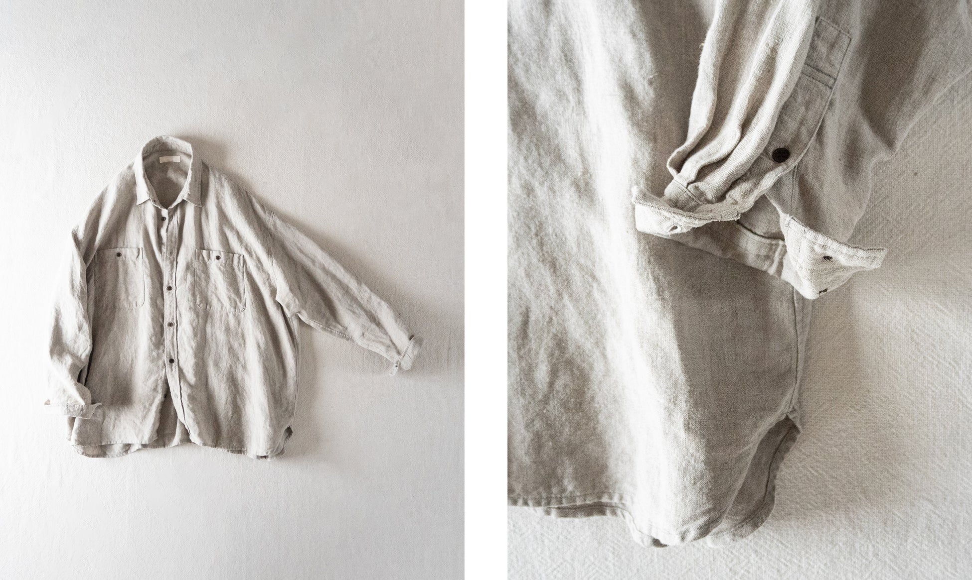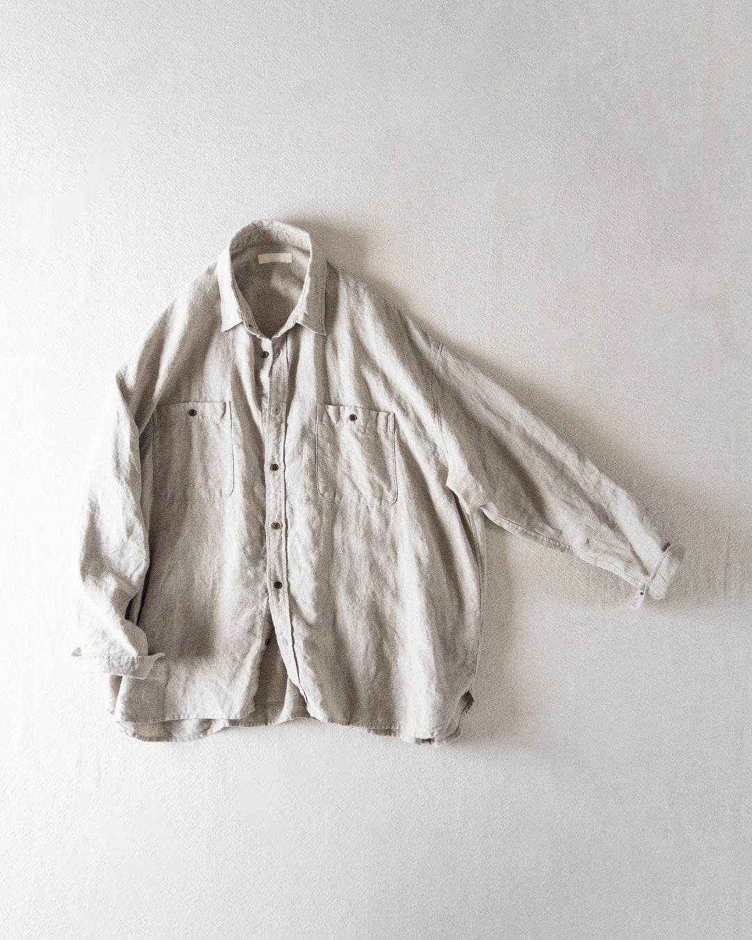 これまでブランドが培ってきたリネン服の経験値から、シーズンレスで使い勝手の良い中厚地のリネンバギーシャツをご用意しました。