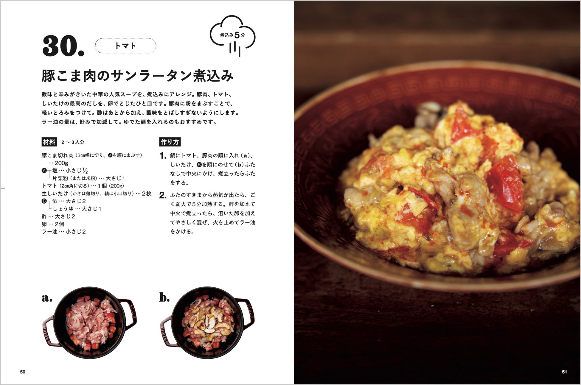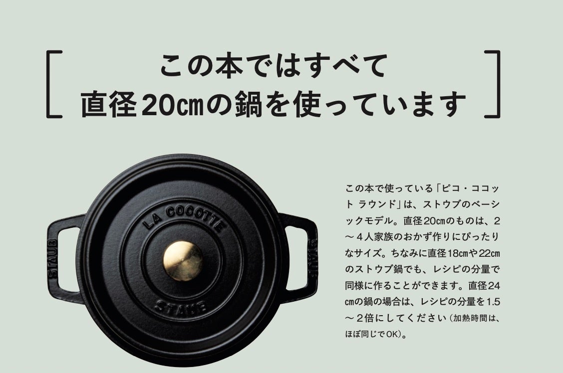 重たいふたが特徴のストウブは、高い保温性・蓄熱性をもち、水を加えずに食材の水分だけで「無水調理」ができるのが大きな特徴。しかも、加熱後にふたをして置いておけば余熱調理ができるので、実は煮込み時間は短くてOK。この本のレシピは、蒸気が出てから煮込む時間はわずか0〜15分!実はストウブは時短調理が得意=光熱費節約にも大いに役立つ鍋なのです。