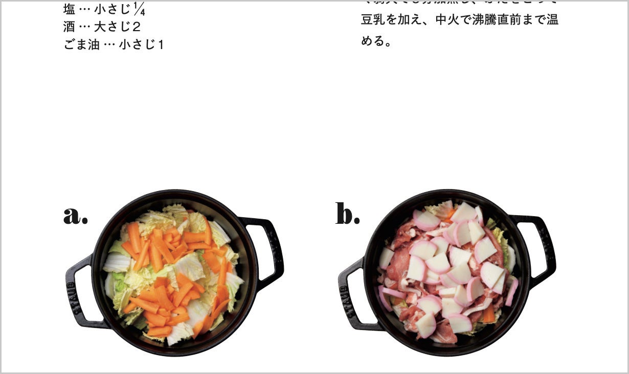 ⑤鍋に重ねて入れる順番がバッチリわかる、プロセスカットつき!