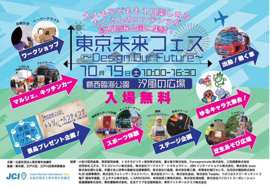「東京未来フェス ~Design Our Future~」(主催:公益社団法人東京青年会議所)が10月19日(土)に葛西臨海公園 汐風の広場にて開催します。