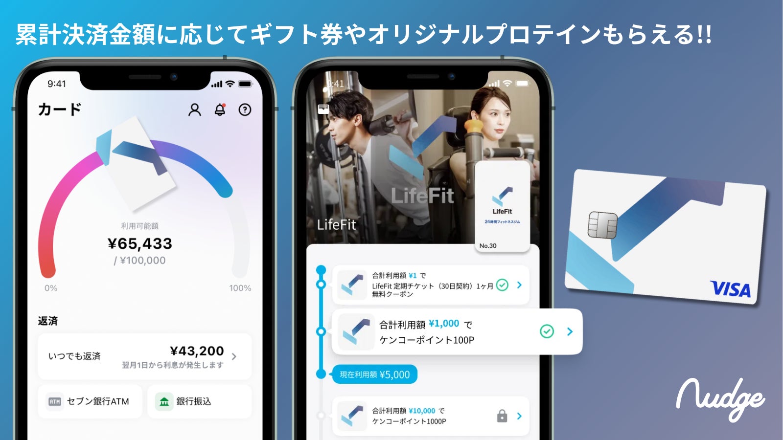 ナッジ株式会社(本社:東京都千代田区、代表取締役:沖田貴史)は、株式会社FiT(本社:京都府京都市、代表取締役:加藤恵多、以下「FiT」)と提携し、次世代クレジットカード「Nudge(ナッジ、以下「ナッジカード」)」アプリにて、「LifeFit 公式クレジットカード」の提供を4月22日(火)より開始しました。
