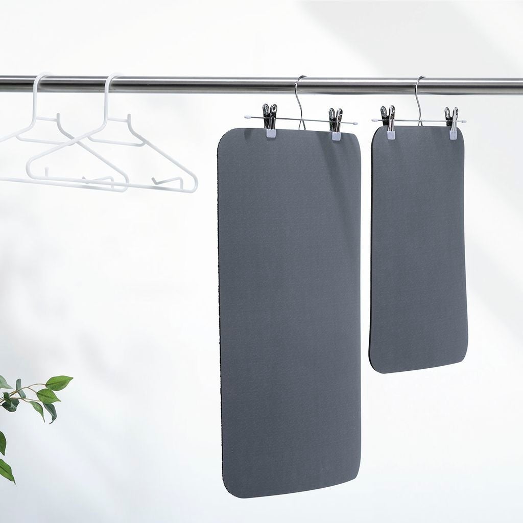 ②軽くてやわらかいので、乾燥後は丸めて省スペースに収納できます。使用後はハンガーなどに吊るして干しておくことも。