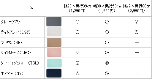 また、グレーとライトグレー色に、従来よりも大きい新サイズの幅47×奥行80㎝が新登場。より広々とご使用いただけます。