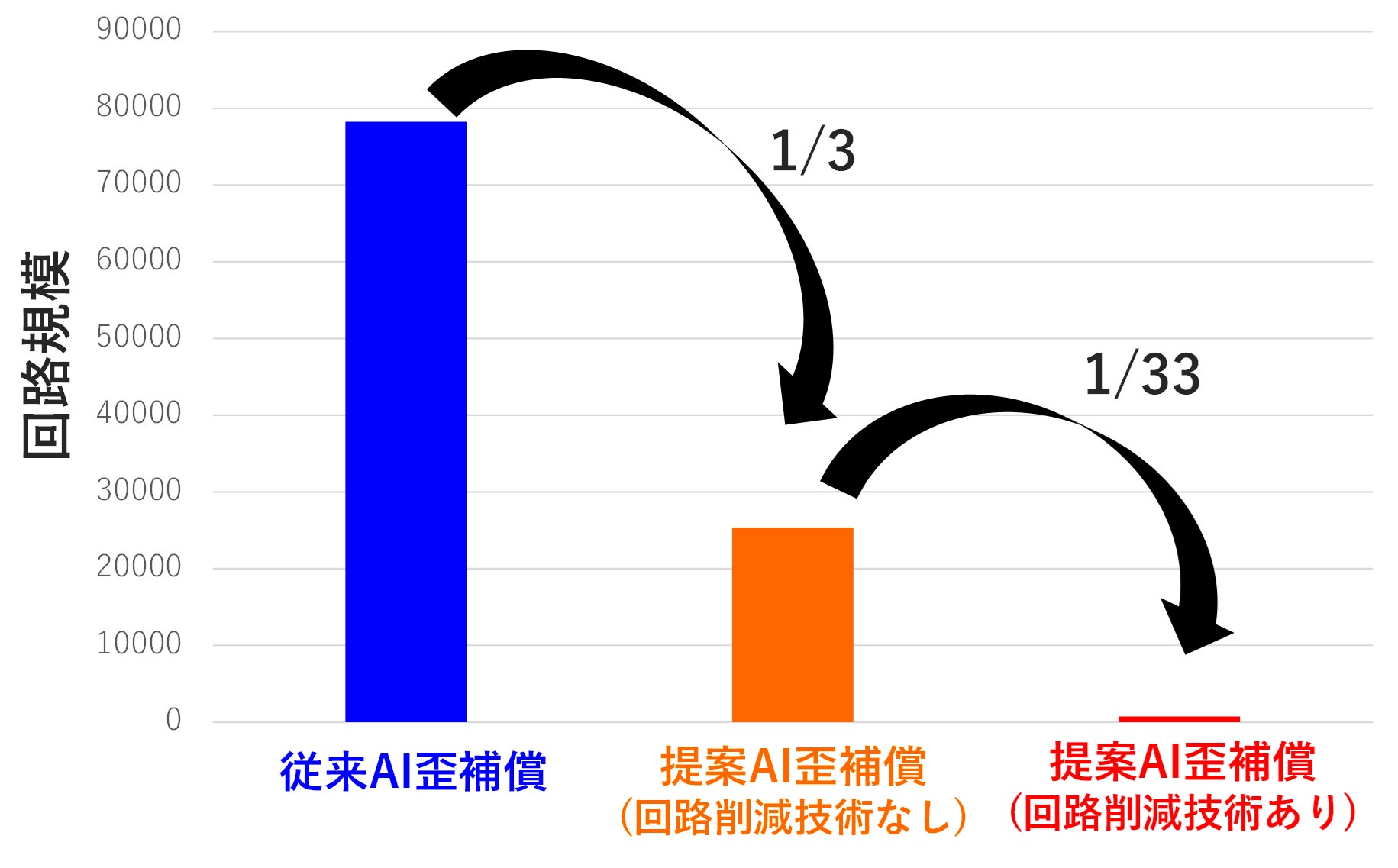 さらに、B)ニューラルネットワークの回路設計にニューラルネットワークの枝刈りを効率的にできる条件を独自に発見したことで、精度劣化を抑え、演算量を1/33に削減しました。