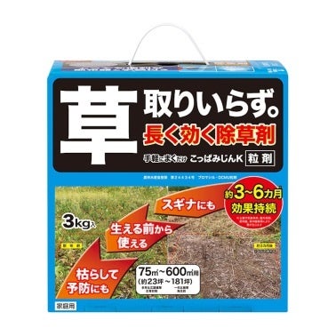 コメリの人気除草剤「草取りいらず。粒剤」がこの度、成分を追加して新たにデビュー。容量は3kgと変わらずに、使用最大面積が400㎡から600㎡にパワーアップいたしました。
