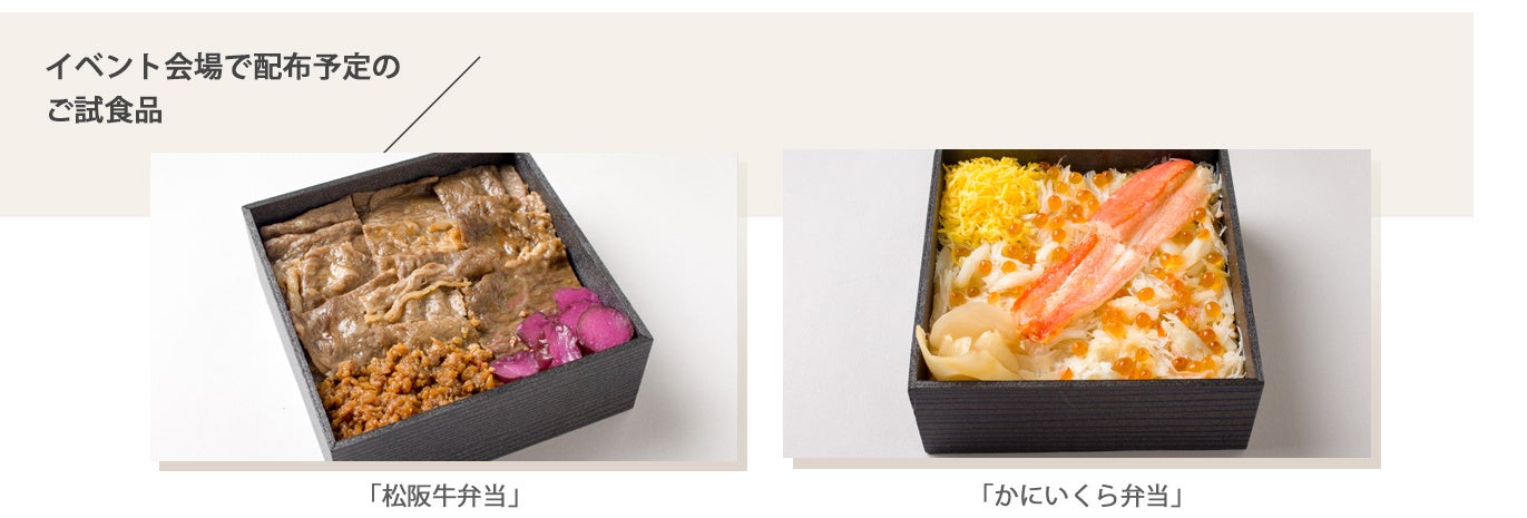 当日は、各日先着200名様限定で「松阪牛弁当」「かにいくら弁当」のご試食を配布いたします。