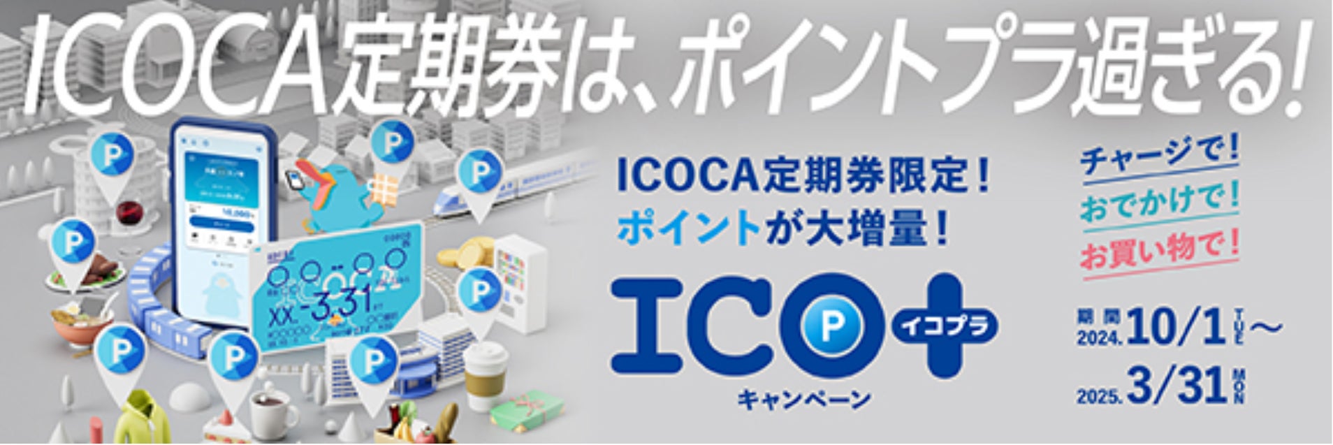 ICOCA定期券で毎日をおトクに!ご好評につき今年度は期間を拡大!ICOCA定期券に様々な特典をプラスしてご利用いただける『ICO+』(イコプラ)を実施します