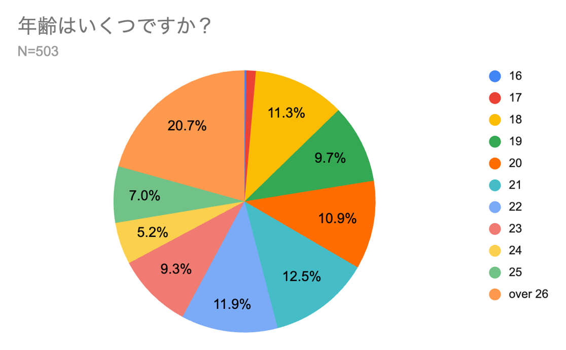 20歳前後の若年層が中心、最終学歴は高卒が主流。大卒が4人に1人、安定した教育水準が明らかに