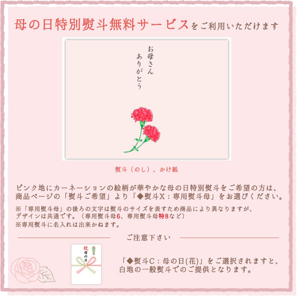 今年もピンク地にカーネーションの絵柄が華やかな「母の日 特別熨斗」無料サービスをご用意いたしました。