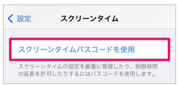 Step2:画面を下にスクロールすると「スクリーンタイム・パスコードを使用」という項目があるので、こちらからパスコードを設定します。