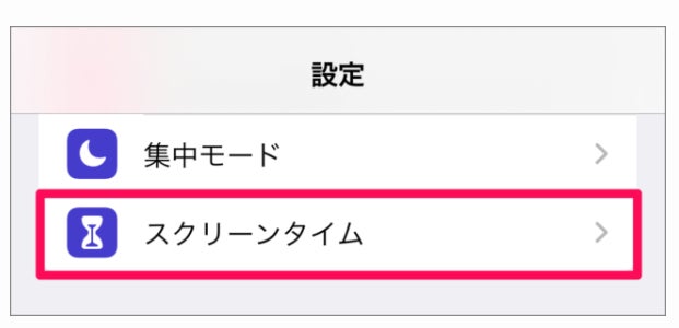 Step1: 「設定」から「スクリーンタイム」を選択します。