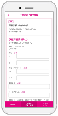 下関市が提供を開始する「オンライン予約サービス」は、自治体の子育て関連事業などの予約をオンラインで実施できるサービスです。『母子モ』の予約ページから、利用希望日時の選択や、氏名、連絡先など必要事項を入力することで、24時間どこからでも予約が可能となります。