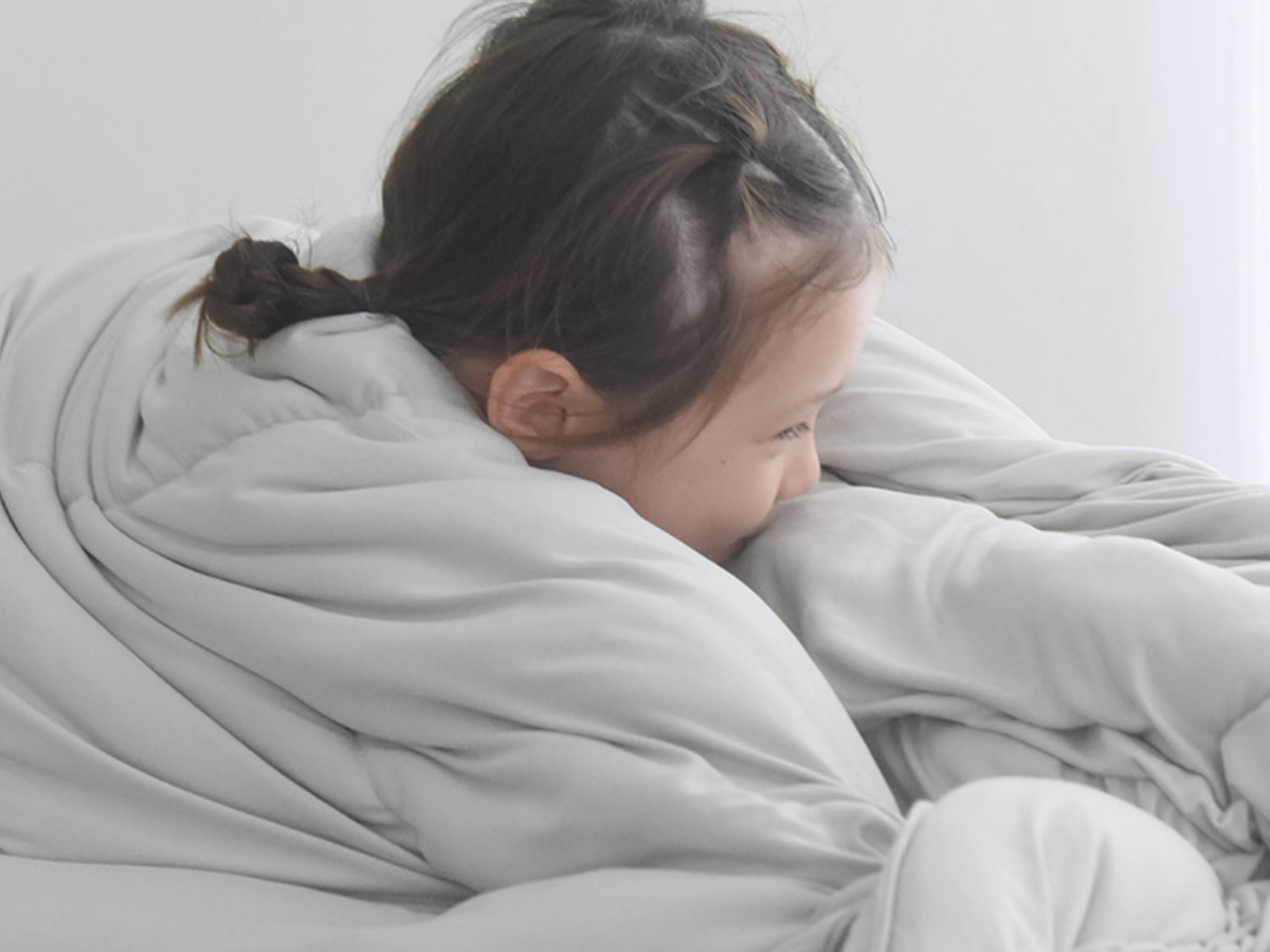 掛けているのを忘れるくらい軽やかで、お子様の寝具としてご使用いただくにも◎。お洗濯もしやすく、収納時かさばらないのが嬉しいポイントです。