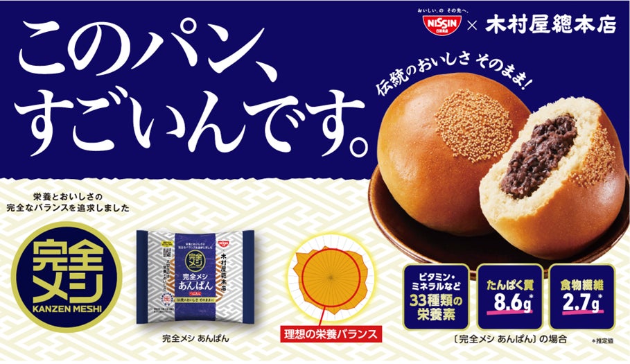 「完全メシ あんぱん」は、1869年 (明治2年) に創業した老舗パンメーカーの木村屋總本店と共同開発した商品で、2022年に木村屋總本店のオンラインショップや直営店など中心に販売したところ、多くの方々にご好評をいただきました。