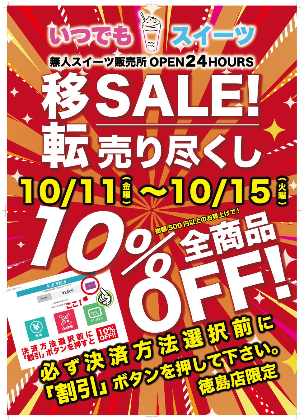「いつでもスイーツ徳島店」移転売り尽くしセール実施!!