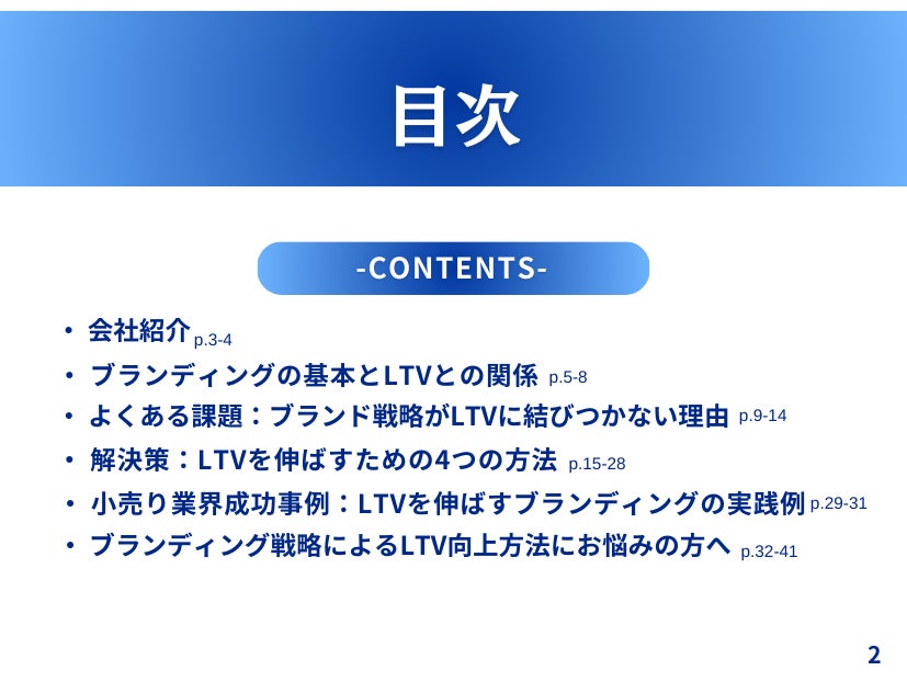 また、よくあるブランディングの悩みについて課題策とともに紹介しています。自社のブランディング戦略を見直したい方や、顧客と長期的な関係を築きたいと考えている方にはおすすめの内容です。