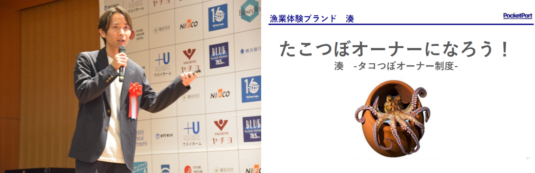 7組のファイナリストの中から、『日本一の釣り情報を誇る自社のアプリを活用した釣り船の予約などにより、横須賀で釣りを一大観光産業とすることを目指す』株式会社アングラーズが奨励金100万円を獲得しました。