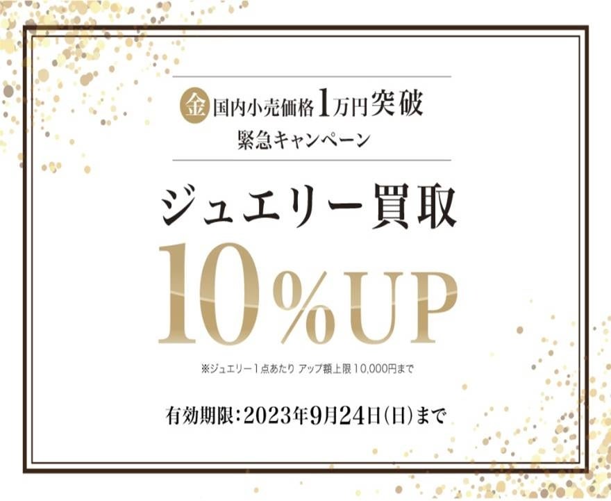 内 容:宝石・貴金属、ジュエリー全品の買取金額を10%UP
