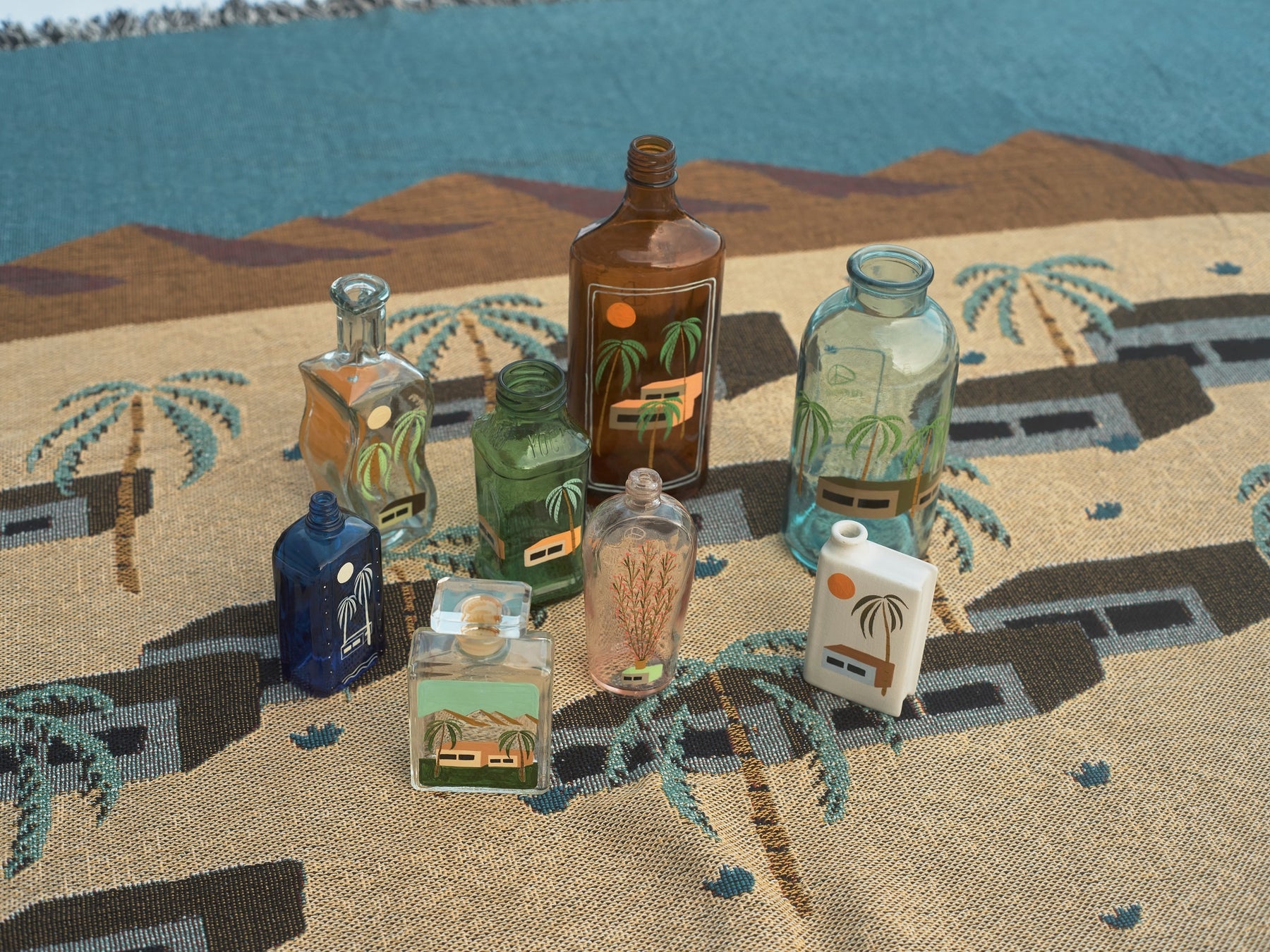 作品の展示・販売に加え、オガワ氏がハンドペイントを施した瓶や、シルクスクリーンを施した古着、アメリカ製の大判ラグなど、このエキシビジョン限定アイテムの販売も!