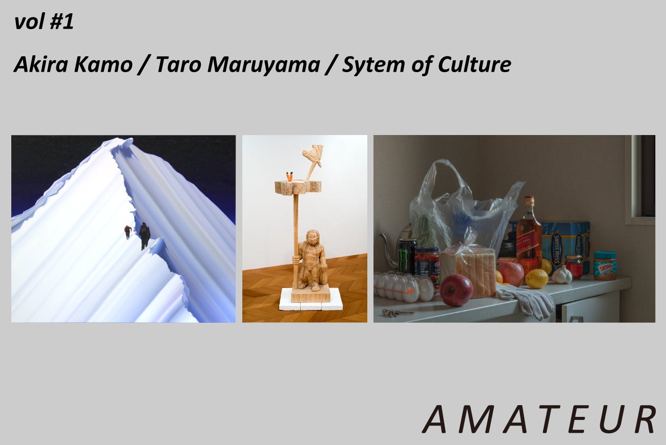 AMATEURの1回目の展示として、絵画の加茂昂、彫刻家の丸山太郎、写真家のSystem of Cultureの3名による展覧会を開催します。3組の作家に共通するのは、それぞれが「日常」というものに向き合い、それを再解釈、再構築の上、作品として発表している点です。
