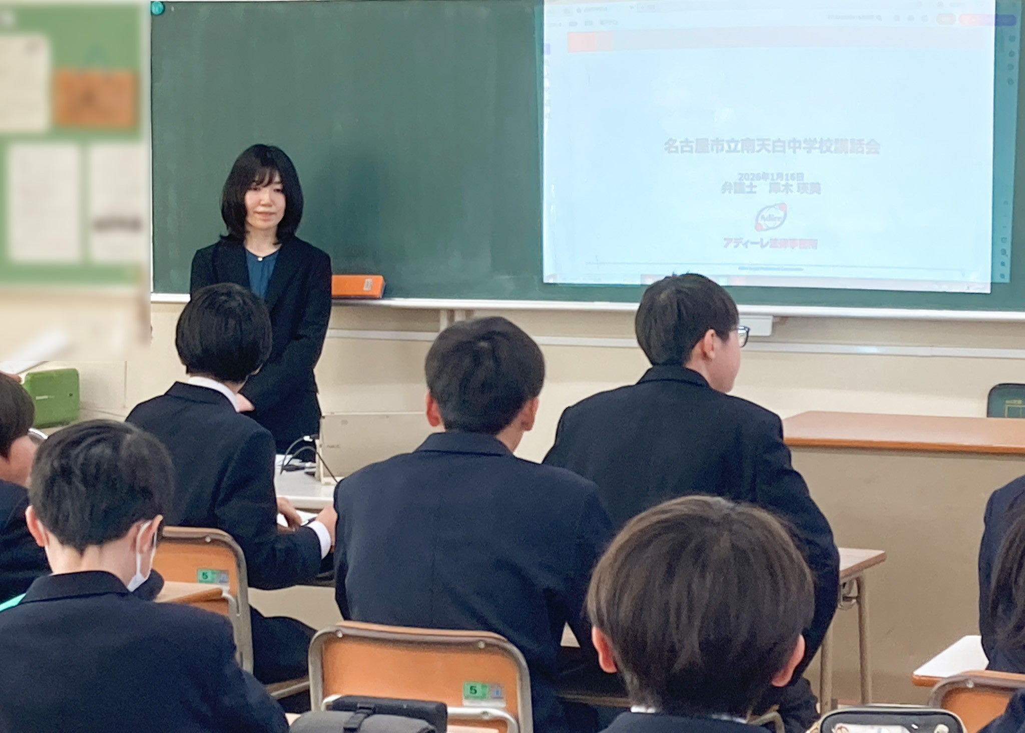 アディーレ法律事務所(東京都豊島区、代表弁護士・鈴木淳巳、以下「アディーレ」)は、未来を担う子どもたちの「知らないことで損をする状況」をなくす「子どもたちを守る法教育プロジェクト」の一環として、1月16日(金)に名古屋市立南天白中学校にて職業人講話「職業を知る」を実施しました。