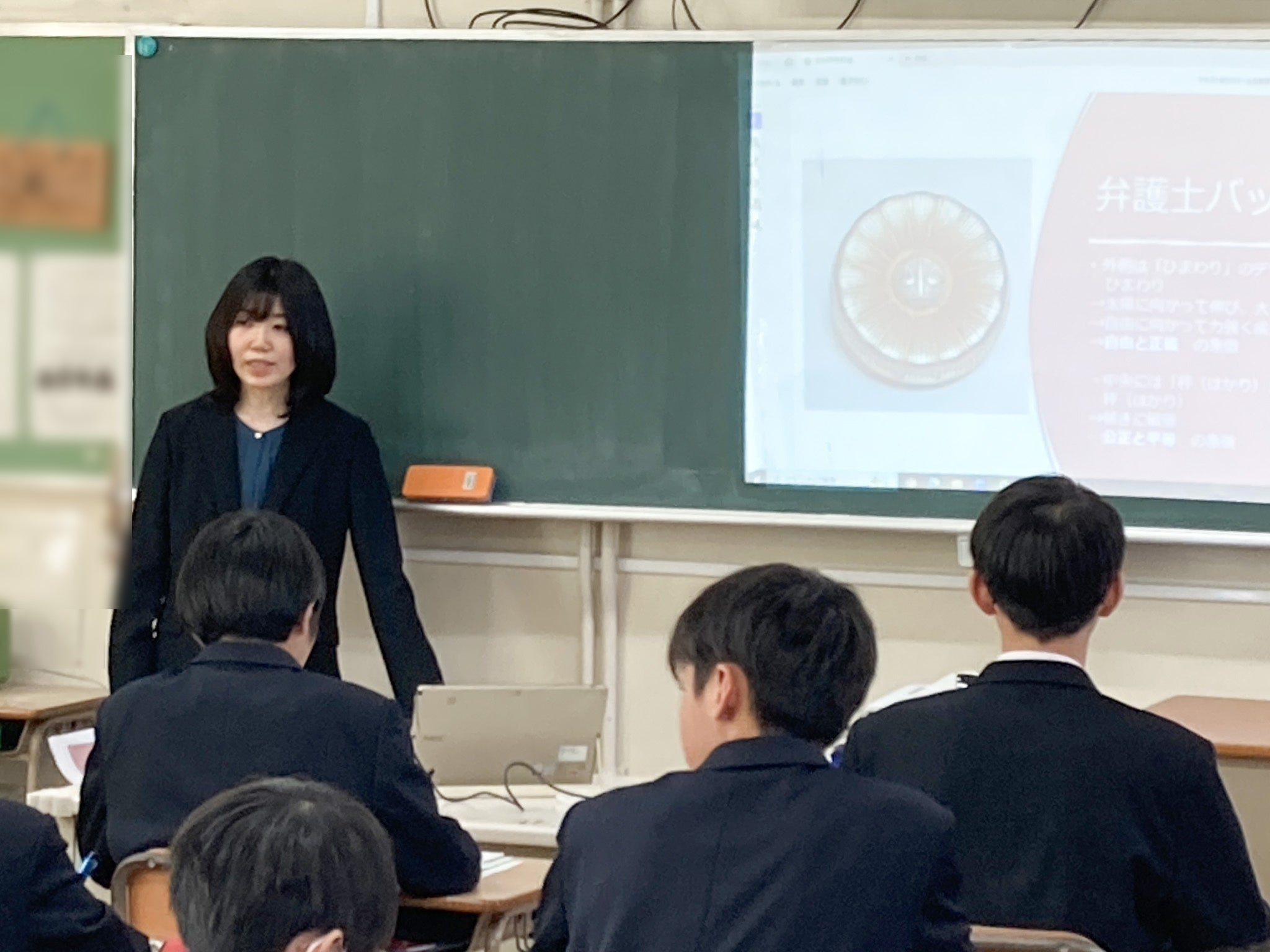 本講演は「職業を知る」というテーマのもと、弁護士という職業のリアルな姿や、資格取得までのプロセスを伝えることで、生徒たちの進路選択の一助となることを目的として開催されました。