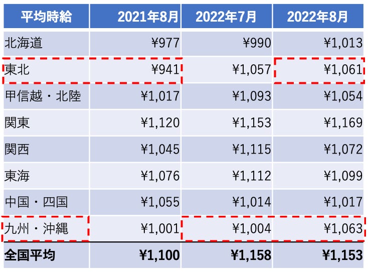 前年同月比で最も増加しているエリアは東北で、前月比で最も増加しているエリアは九州・沖縄となっています。 (2022年8月現在)