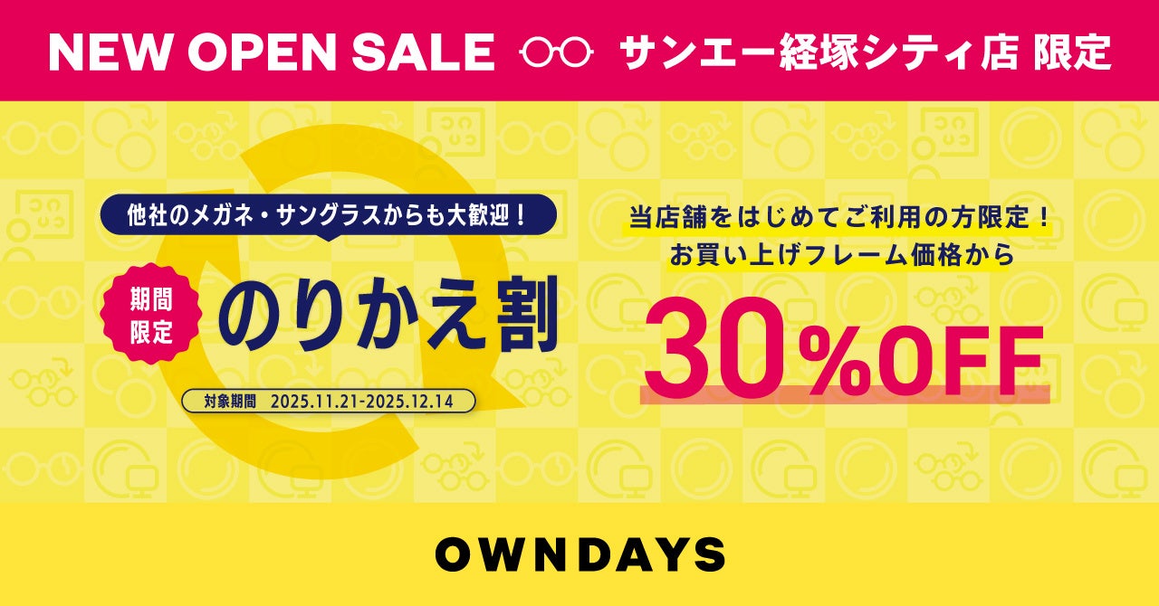 11月21日(金)、沖縄のベッドタウン浦添市に位置し、ファミリー層も多く訪れる「サンエー経塚シティ」内に、OWNDAYSの新店舗がオープンします。